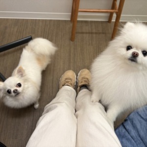 真っ白のちわわとポメラニアンを綺麗に仕上げていかれました。
