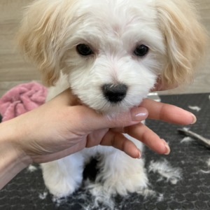 ファーストトリミングとなる、ミックスのパピー君、ご来店いただきました。