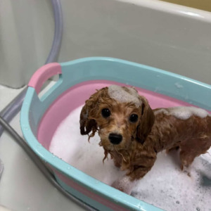 セルフでご利用いただきました、トイプーのアロ君です。