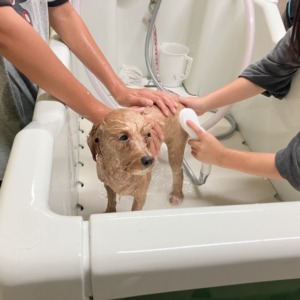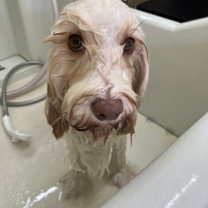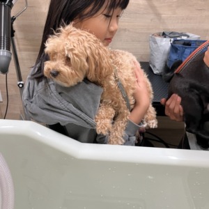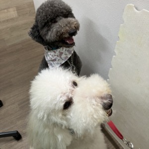 スタンプーの海くん、ご利用ありがとうございます。 皮膚疾患の予防も兼ねて毎月ご利用いただいております。 海くんが来店される日はアンジュ宅お里会のようにたくさんのスタンプーが遊びにきてくれます。 狭い店内では、人が小さく、犬が好きに闊...