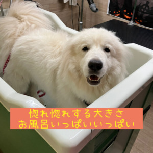 グレートピレニーズ犬、当店はじめてご利用の犬種にります。 ご来店ありがとうございます( ´∀` ) まだ子供のマシュ♪それでも大きいですね。 白くてふわふわで、とても綺麗。 毛量の多い子...